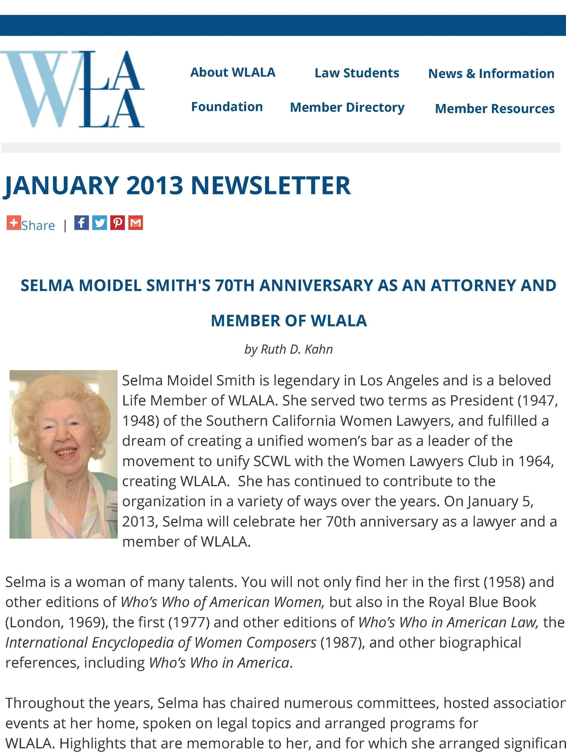 “WLALA Trailblazer and Living Gem: Selma Moidel Smith”