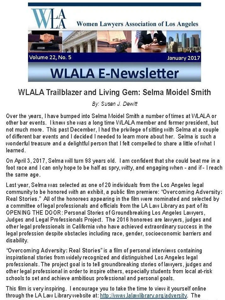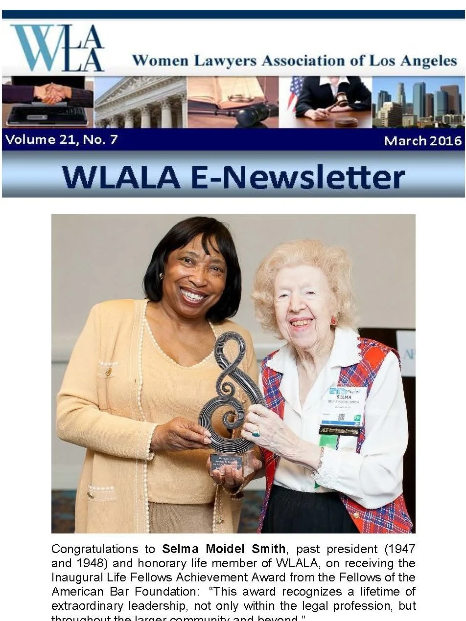 “Selma Moidel Smith’s 70th Anniversary as an Attorney and Member of WLALA”