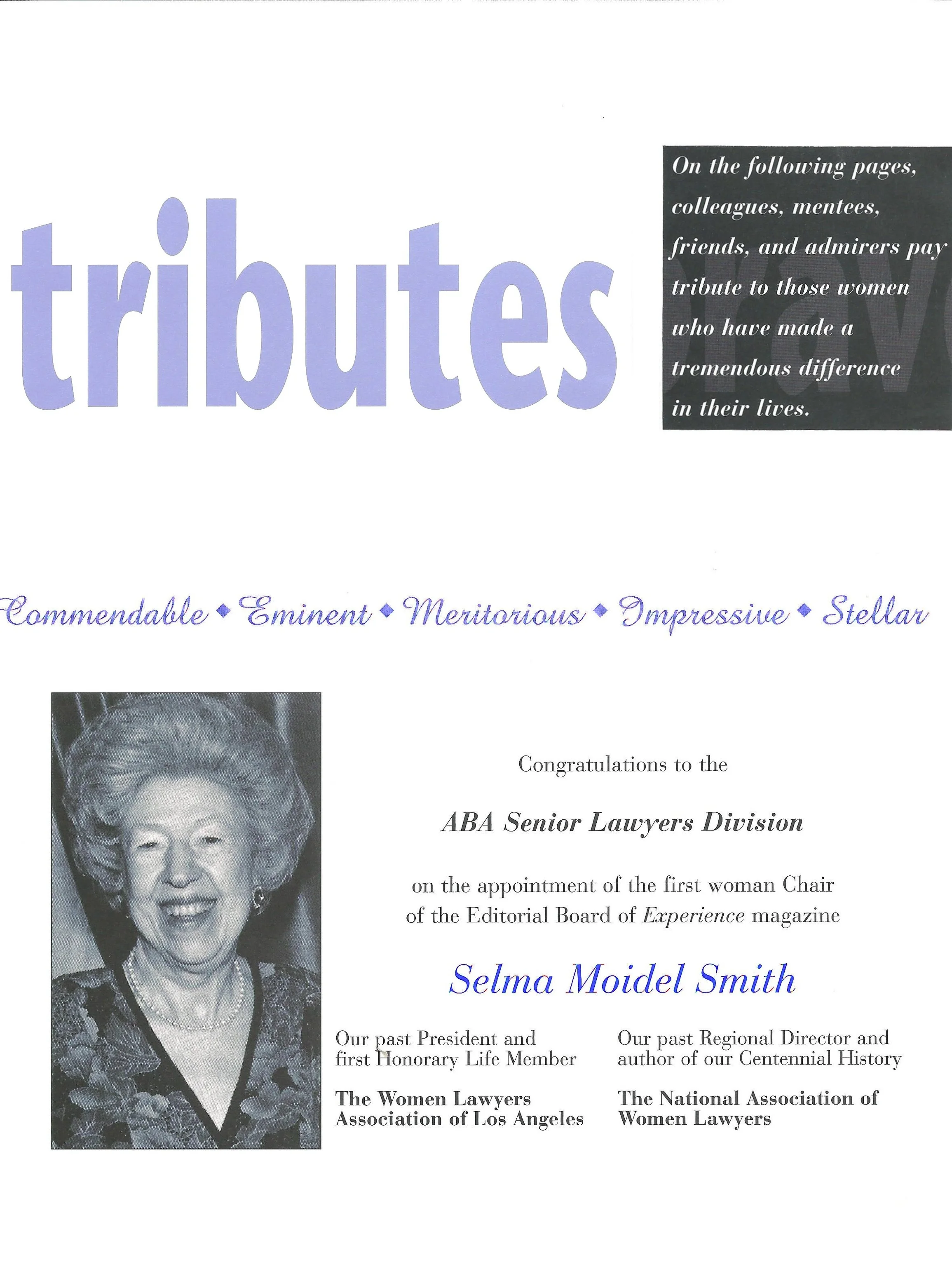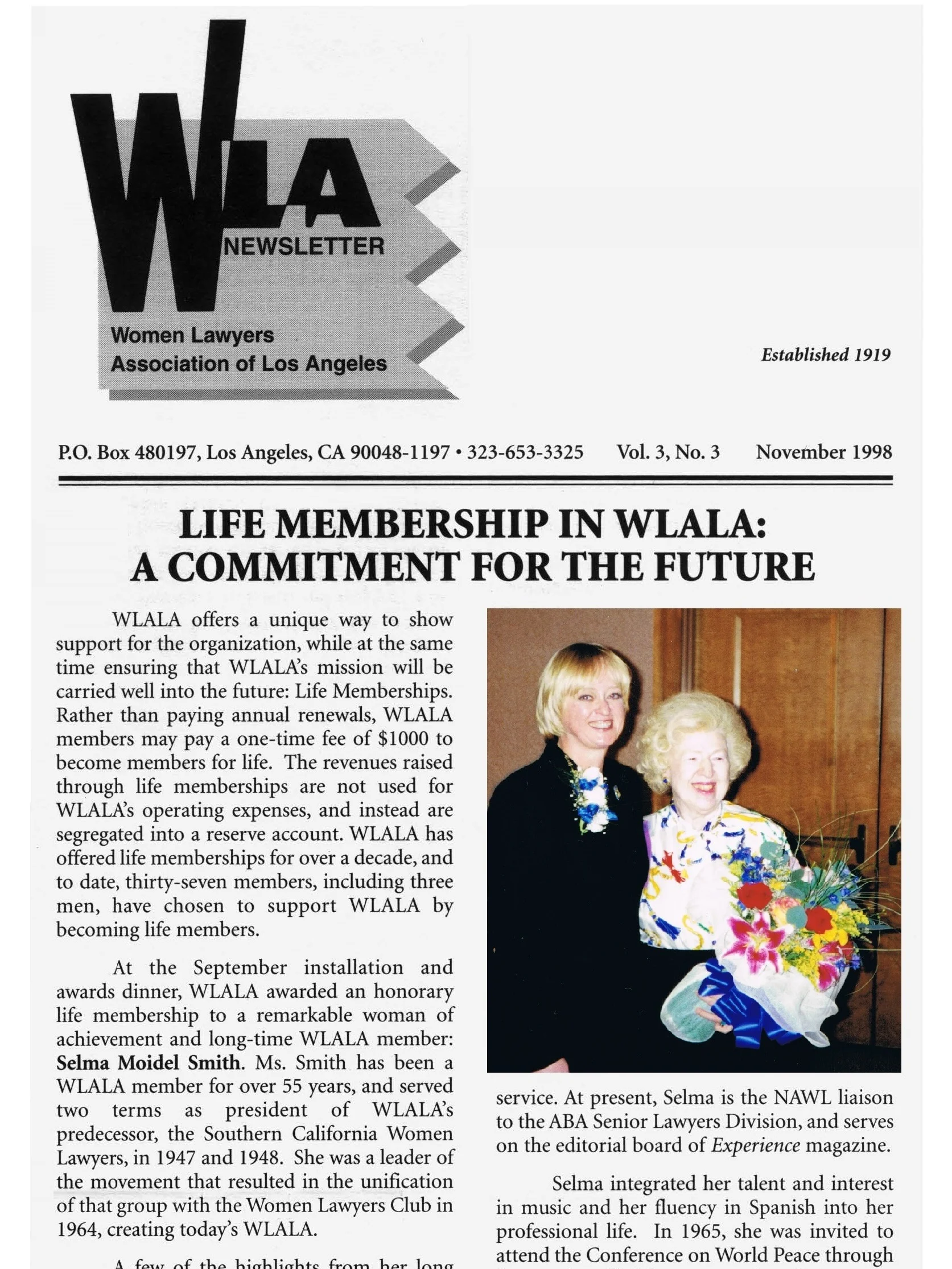 “Life Membership in WLALA” — Biographical Feature on occasion of awarding WLALA’s first and only Honorary Life Membership to Selma Moidel Smith by President Linda S. Peterson, September 16, 1998.