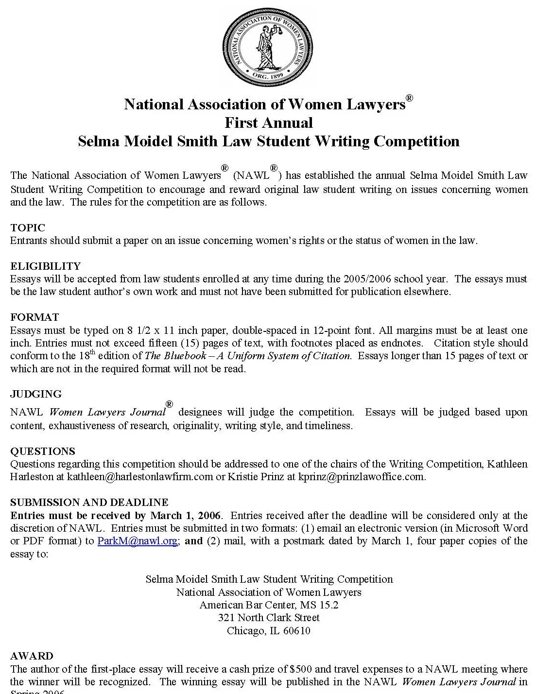 Annual Selma Moidel Smith Law Student Writing Competition on Women and the Law