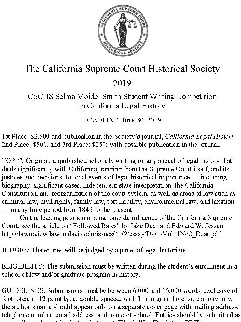 Selma Moidel Smith Student Writing Competition in California Legal History